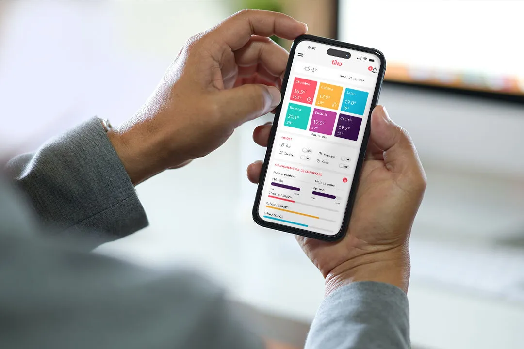 Fabriqués majoritairement en France, les thermostats tiko s’adaptent à tous vos radiateurs électriques, qu’ils soient récents ou anciens. Grâce à un contrôle pièce par pièce, ajustez facilement la température depuis votre téléphone pour un confort sur-mesure. Et parce que votre sécurité est notre priorité, vos données sont protégées sur des serveurs sécurisés en Suisse.
